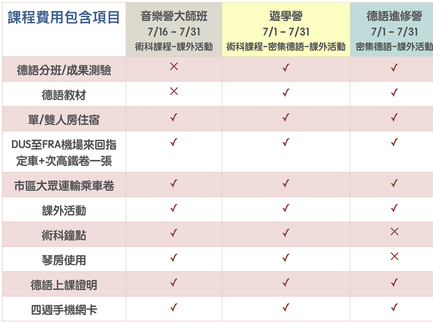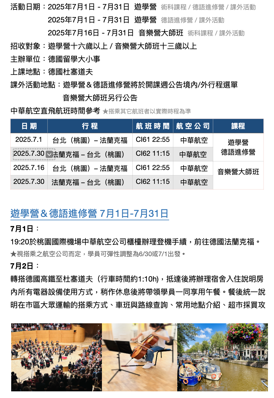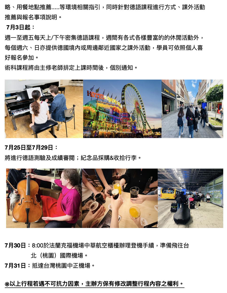 7/1 - 7/31 遊學營 密集德語課程&術科課程&課外活動